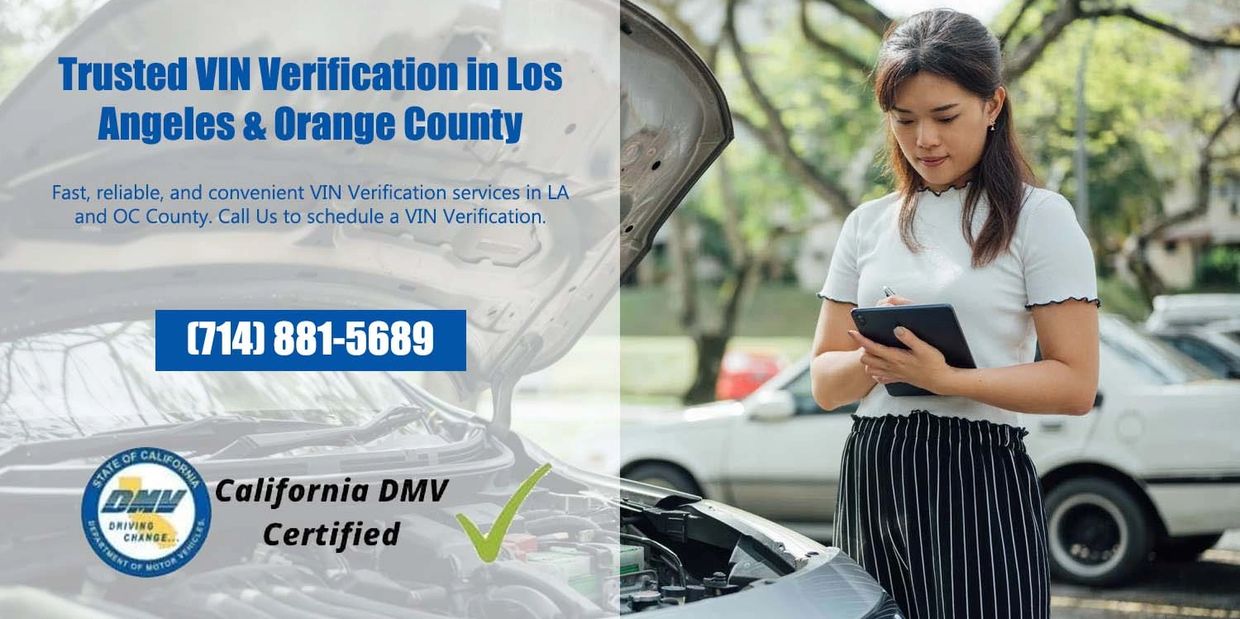 A California VIN verification is a California DMV required physical inspection of an out-of-state vehicle. This is needed for you to register the vehicle into the California DMV database. The inspection is documented on a CA DMV REG31 form by a licensed VIN Verifier.